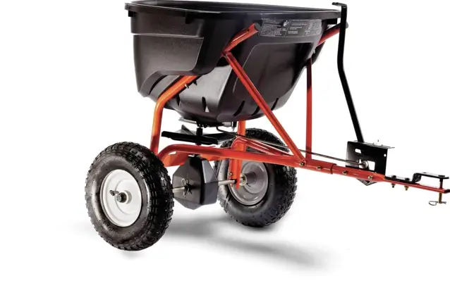 A dependable pull-behind spreader, this model offers a smooth distribution system and broad compatibility with many mower brands.